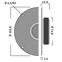 Dynamik. Aufhängung der Kalotte in stark dämpfender Weich-PVC Sicke. Front